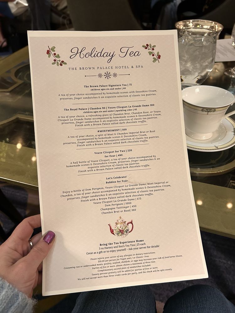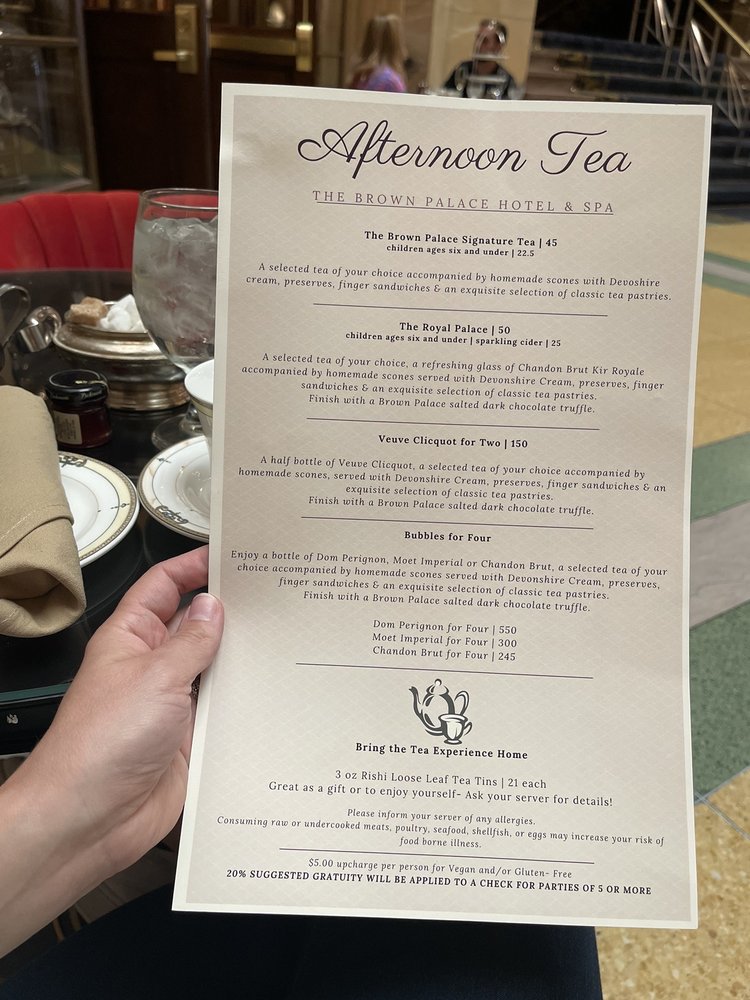 Welcome to Brown Palace Coffee & Tea Co., a gem nestled in the heart of Denver. Known for its elegant ambiance, this charming cafe offers a delightful menu that caters to every palate. Begin your day with a classic Coffee of the Day for just $2.00, or indulge in a creamy Cappuccino or Latte for $4.00. If the weather calls for something chilled, choose from refreshing iced options like an Iced Latte or Iced Chai, starting at $4.00.